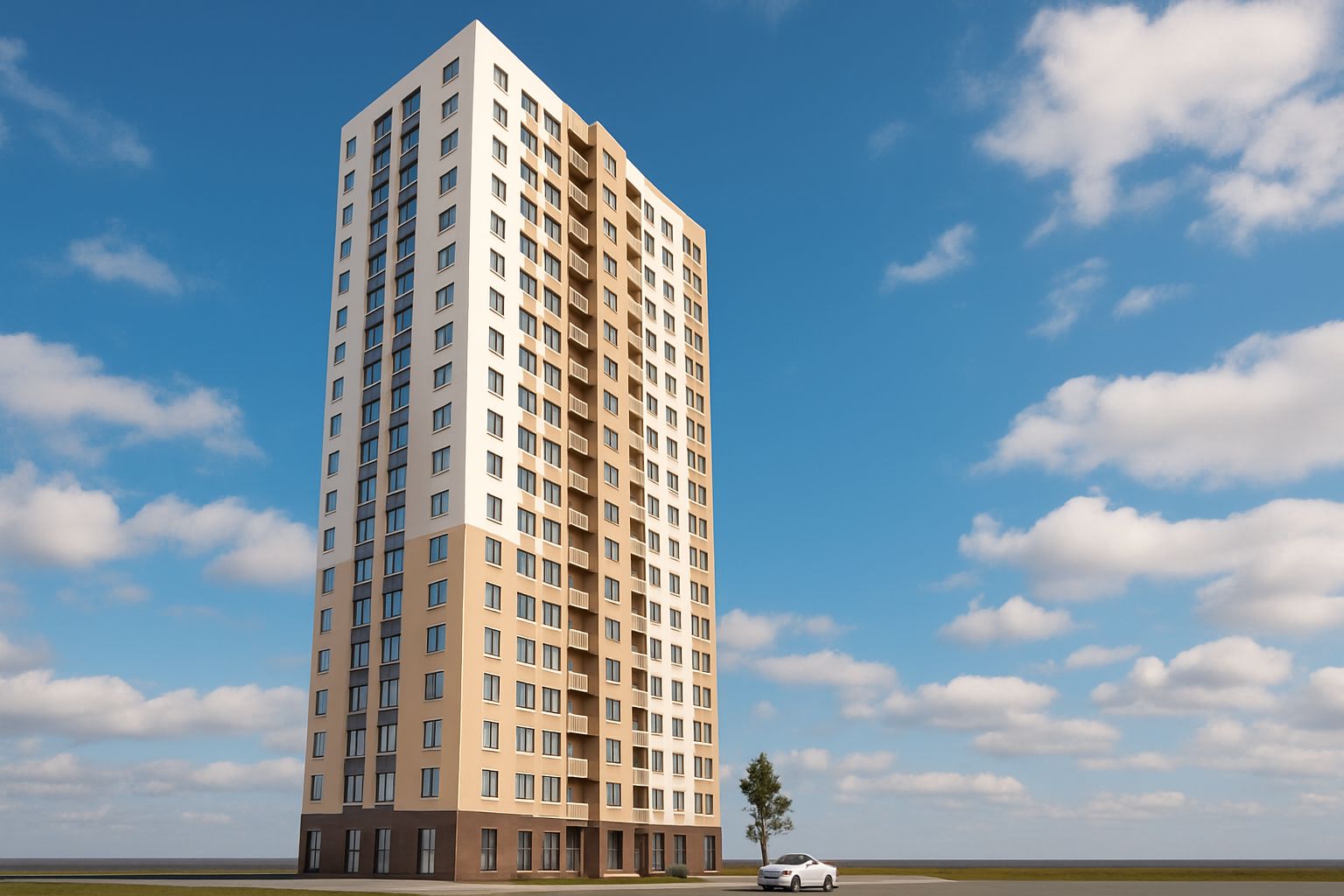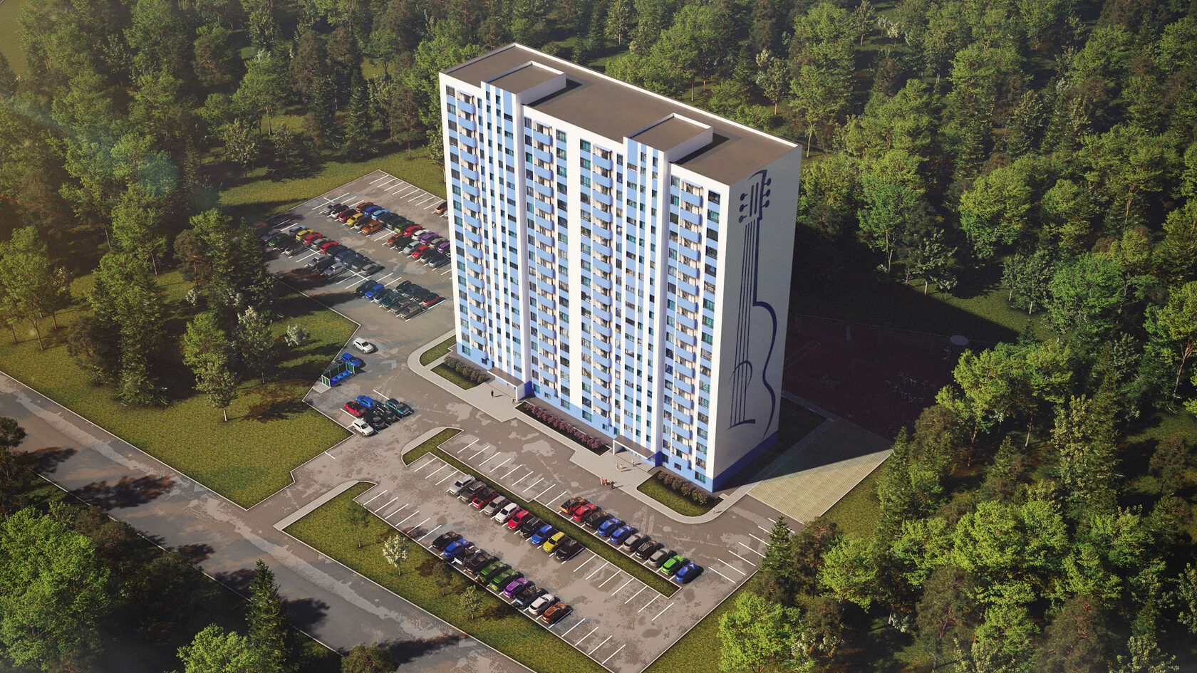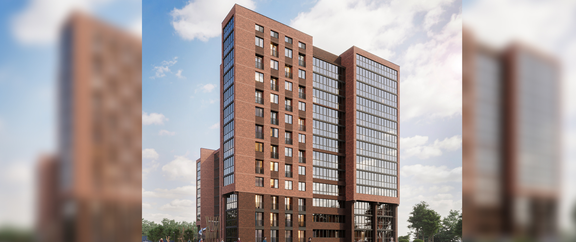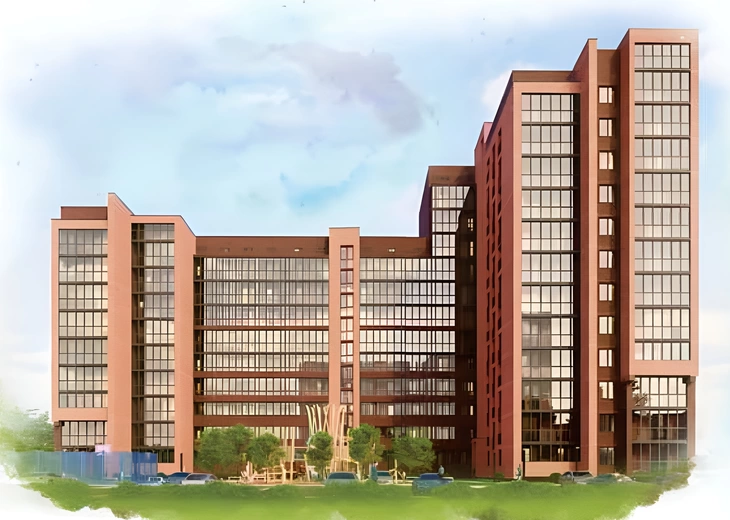 Состоящий из 6 современных 26-этажных домов, построенных по технологии монолит с кирпичным заполнением, квартал будет самым высоким и впечатляющим комплексом в городе.