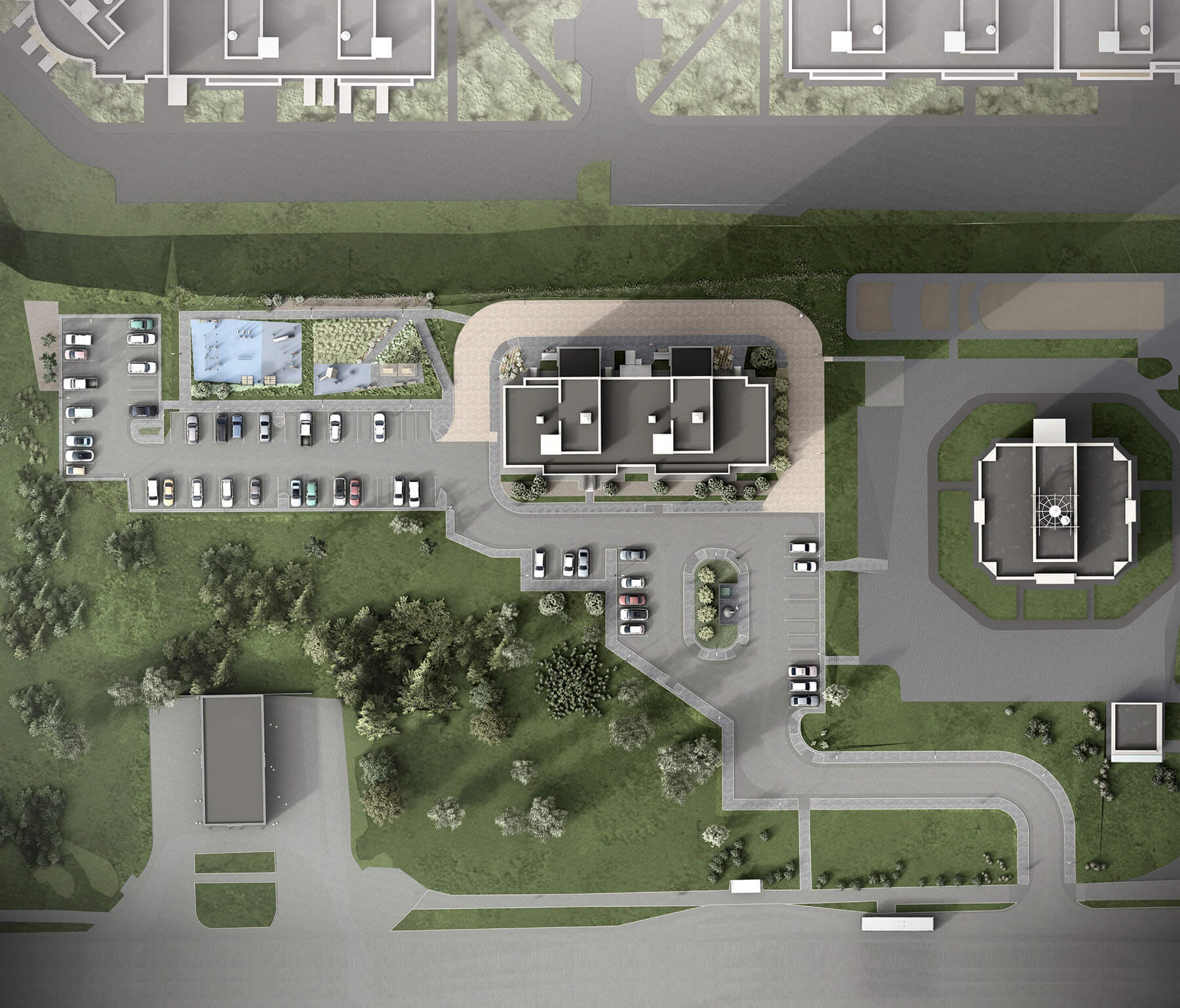 Доступная для жильцов территория на крышах домов занимает более 3000 кв. м и делится на три функциональные зоны: спортивную, зону для отдыха и медитаций, а также территорию частных террас.